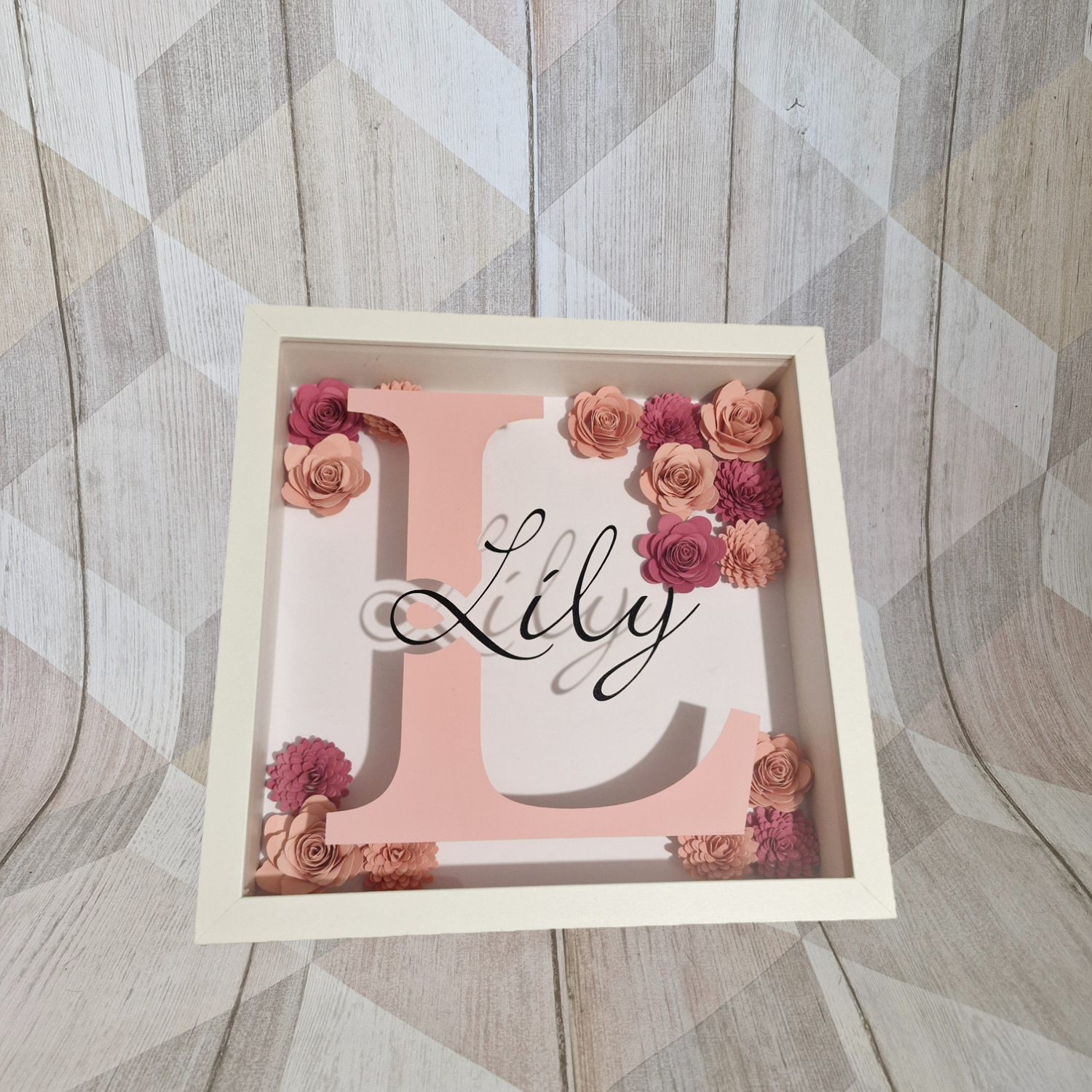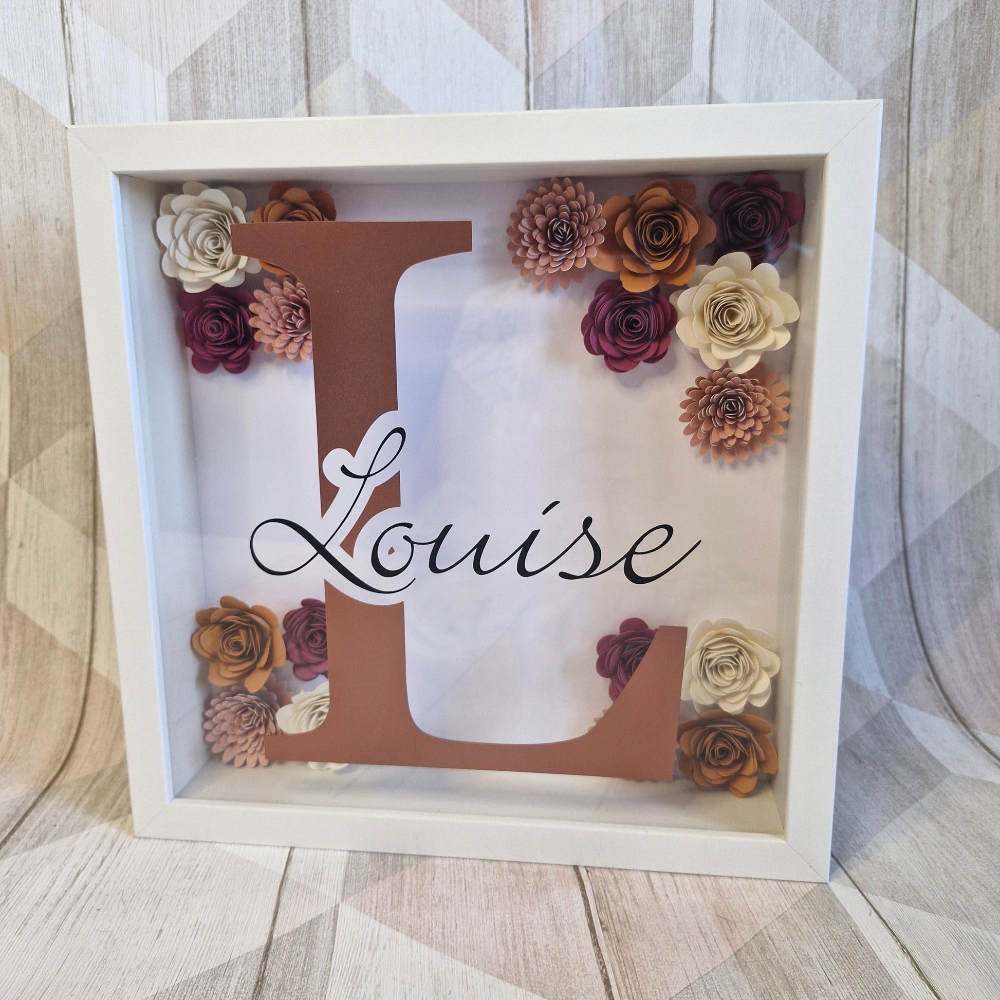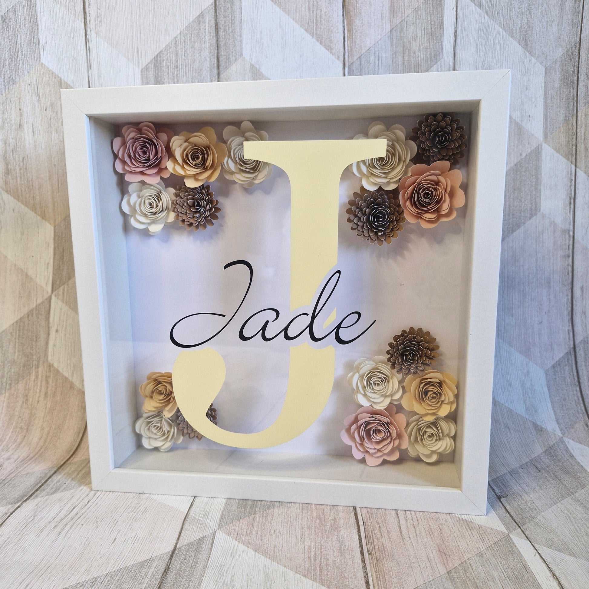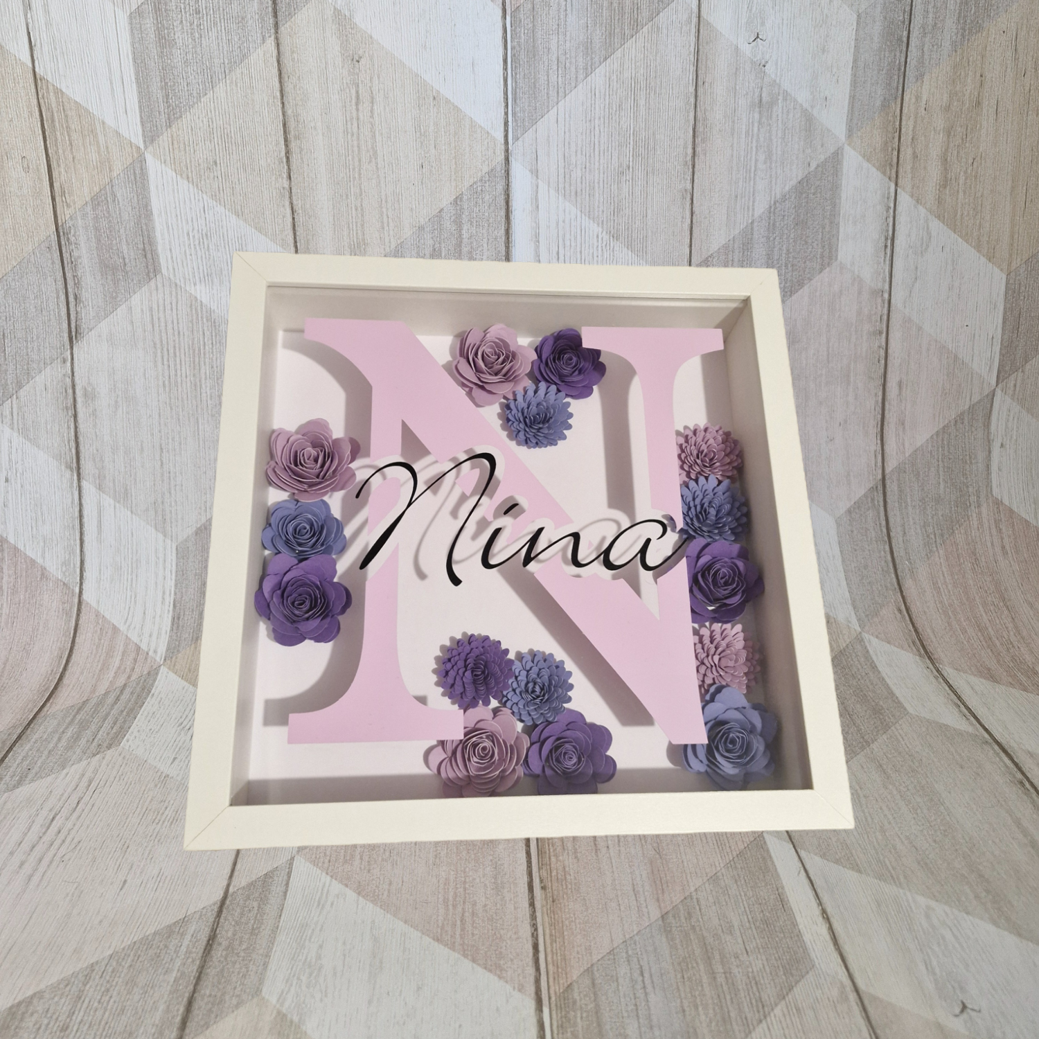 Cadre décoratif personnalisé avec prénom et fleurs en papier